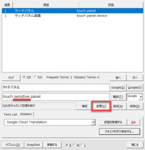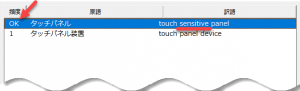訳語を「touch sensitive panel」に変更して[変更]ボタンをクリックします。