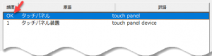 この結果、訳語が修正されこの項目に[OK] マークが付きます。[変更]ボタンをクリックしたときの「他の用語に修正を適用する機能」はないので、「タッチパネル装置」の「touch panel」はそのままになっています。