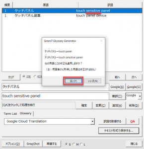 GreenTのGlossary Generator を使い案件毎に用語集を作成する際に、[確定]ボタンがあることに気が付きましたか?