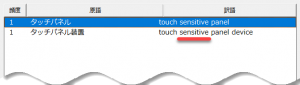 すると、「タッチパネル装置」の訳語にある「touch panel」も「touch sensitive panel」に変更されます。