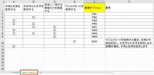2シート目の「検索オプションの設定方法」を開くと、検索オプションで用いられている記号(PM1、PM2など)の意味の説明が表示されます。