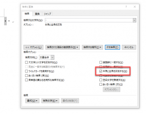 検索オプションが空欄の場合には「半角と全角を区別して検索」します。