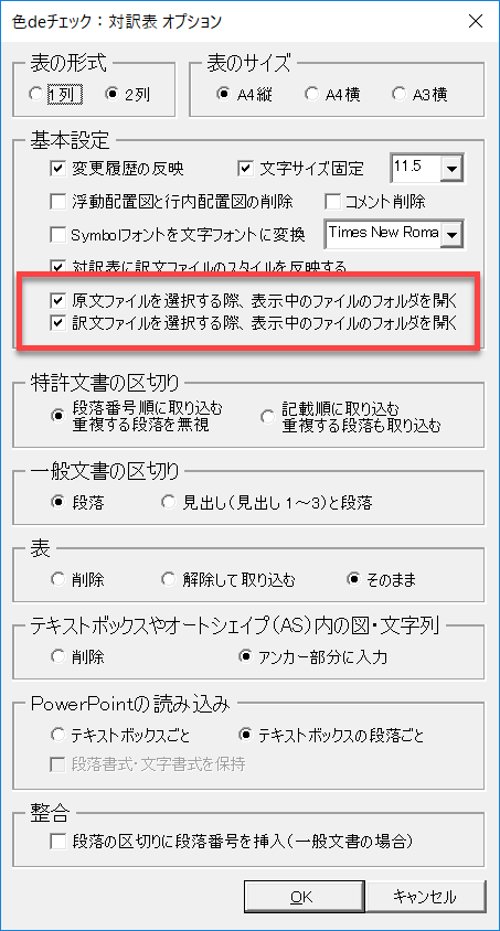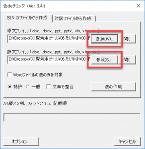 対訳表を作成時に以下の[参照]ボタンをクリックしたとき、現在開いているファイルの保存先のフォルダを開くようなオプションを追加しました。チェック対象のファイルが深い階層に保存されている場合に探しやすくするための工夫です。