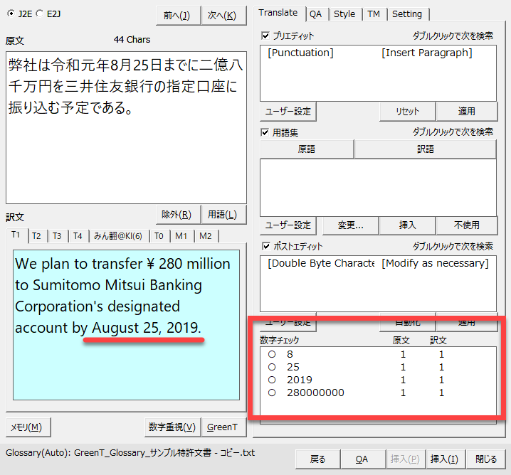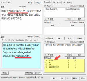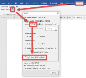 これまでのバージョンでは、GreenTで訳文を作成後に原稿に挿入する際、QA機能を実行しないと[挿入]ボタンをクリックできない仕様にしていました。また、GGにて用語集を作成する際も、QA機能を実行しないと次のステップに進めなかったりテキストファイルに結果を出力できませんでした。