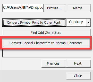 ㎜、㎝、㏠、㏡などの特殊文字を通常の文字列に変換する機能を追加しました。原文ファイルに対して、以下のボタンをクリックしてください。自動的に変換します。