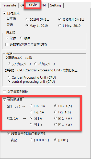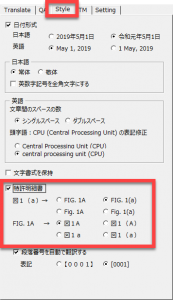 以下のように和訳時の図面番号の表記を4種類から選択できるようになりました。クライアントのスタイルに沿った表記をお選びください。