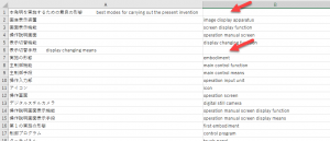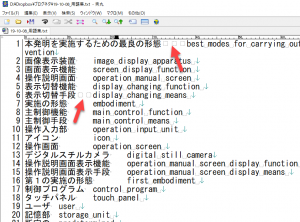 これだと、タブ区切りになっていないので、「本発明を実施するための最良の形態」も「表示切替手段」もチェックできないということになります。