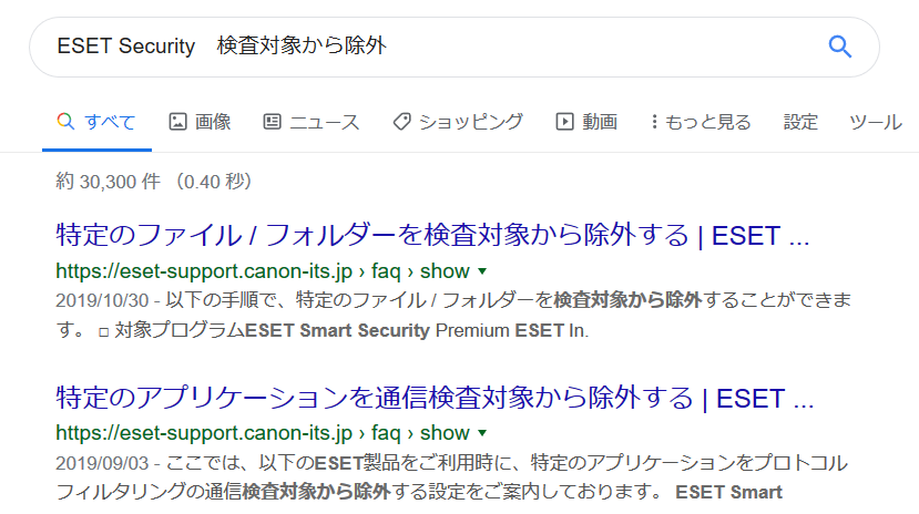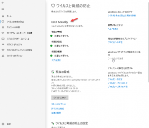 私はESET Securityを使っているので以下のように表示されています。ほかのセキュリティソフトをご利用の場合には別のソフト名が表示されていると思います。