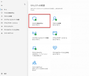 以下のダイアログが表示されますので、[ウィルスと驚異の防止]をクリックします。