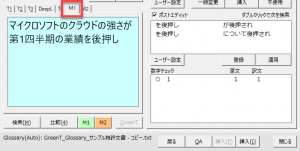 新たに設置された[M1]ボタンと[M2]ボタンとで、現在表示されている翻訳タブ(以下の図ではDeepL翻訳)の訳文を[M1]タブと[M2]タブに移動できます。