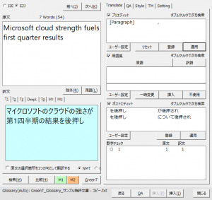[適用]ボタンで訳文を修正した後に翻訳をすると、以下のような出力に変化します。