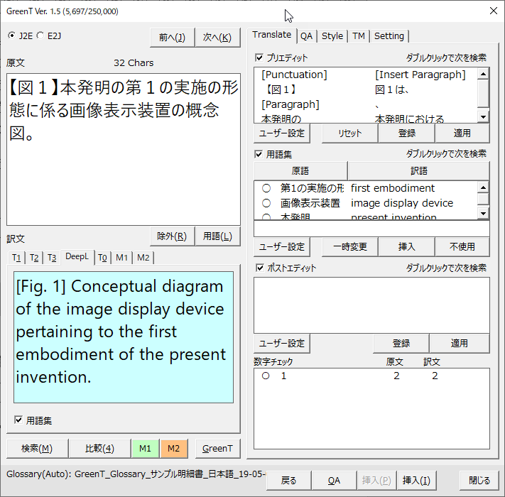 翻訳のStyleで特許明細書を選択している場合の機能です。