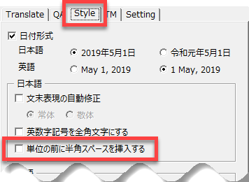 和訳時に数字と単位との間の半角スペースの有無をクライアントから指定されることがあります。