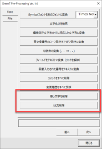 Pre-Processingダイアログのボタンの配置を少し修正しました。また、[隠し文字を削除]ボタンと[ルビを削除]ボタンを追加しました。