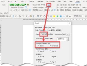 これまでと同じエンジンを利用する場合にはBasic、Google翻訳の新しいエンジンを使う場合にはAdvancedを選択してください。