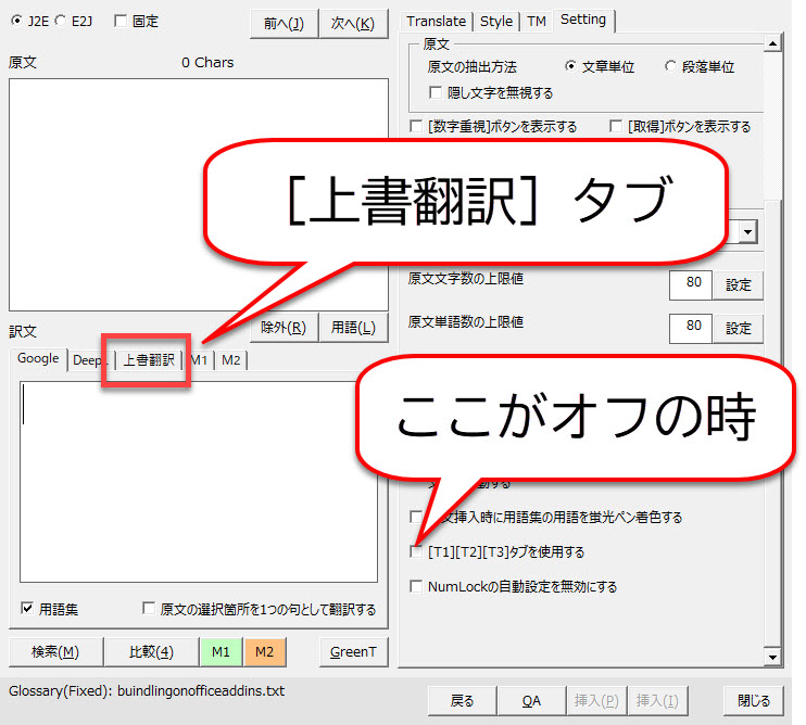 GreenT:[T0]タブの名称を[上書翻訳]に変更