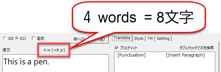 以下の例では、4 wordsで日本語(Japanese Character)で8文字換算であることを示しています。見た目の変更だけです。