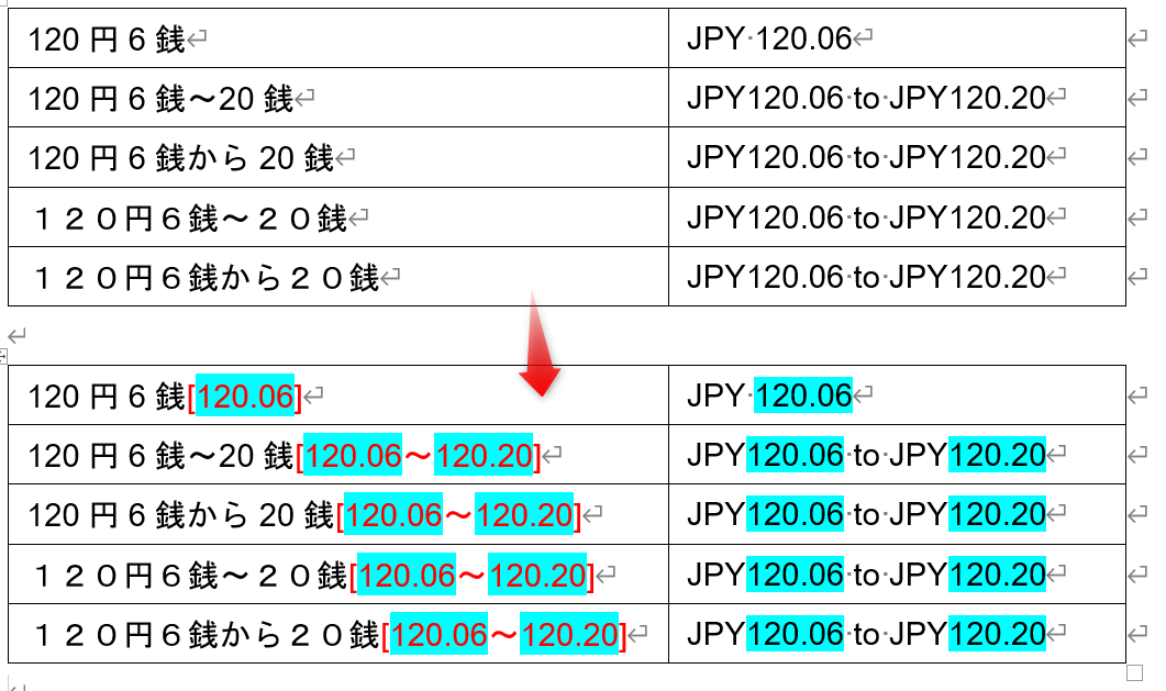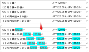 前回のアップデート時に追加した機能を強化しました。以下のような表記パターンに対応しました。日本円の範囲を英訳する場合に、和文と英文とで数字の記述が変わるために正確にチェックできない場合がありました。対応しました。