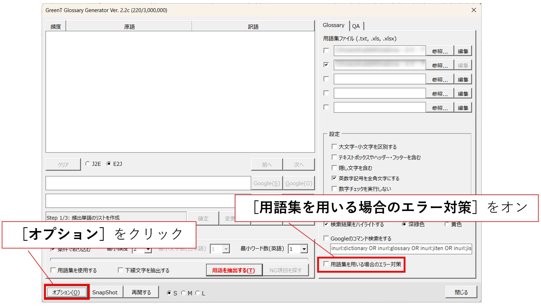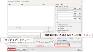用語集を用いる場合に、用語集の適用箇所が多いとエラーが発生することがあります。この場合、以下のチェックボックスをオンにしてください。