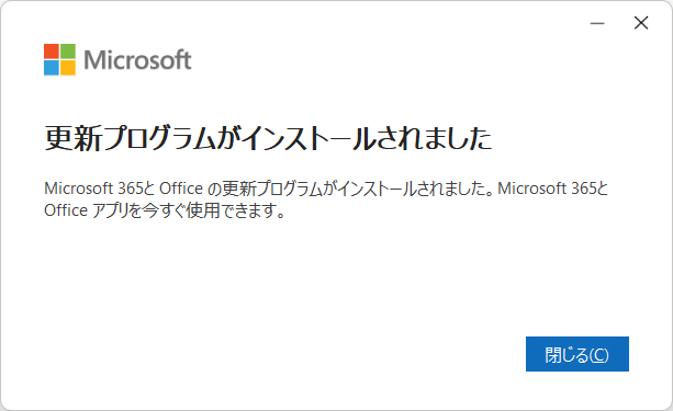 インストールを完了させるために、Word、Excel、PowerPoint、OutlookなどのOffice製品を終了してください。