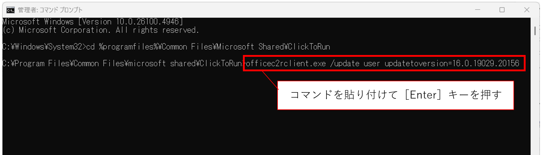 officec2rclient.exe /update user updatetoversion=16.0.19029.20156