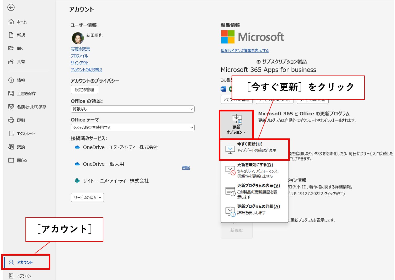 しかしこのようなマクロやアドインの不具合は、Office製品がその後の更新でバグを修正すると自然と解消されます。バグ修正やセキュリティの観点からもOffice製品をできるだけ最新版に更新して利用するほうがよいと思います。なので、Office製品のバグが修正されたらすぐに最新版に更新することをお勧めします。