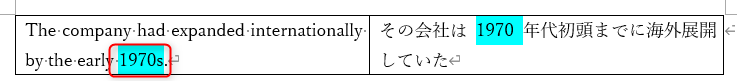 英文「early 1970s」の「1970s」と、和文「1970年代初頭」の「1970」を等価と判断するように改良しました。