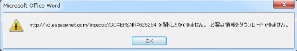 本ソフトウェアで作成される[ステータス]のリンクで表示されるページに、「・・・is not available in the espacenet database」と書かれ、情報が何も表示されないことがあります。