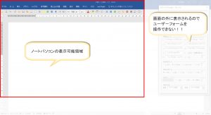 アドインの操作用ダイアログボックス(ユーザーフォーム)の表示位置でときどき問題が起こります。
