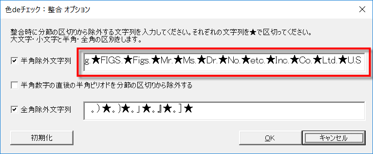 整合時に区切られたくない箇所が見つかったら、その都度、除外文字列を追加してください。