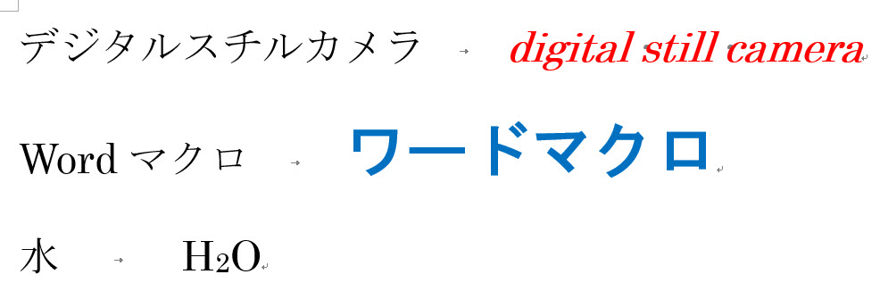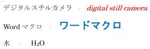 文字色、斜体、ボールド、フォントサイズ、下付きが反映されました。辞書に設定したとおりのフォントサイズになります。