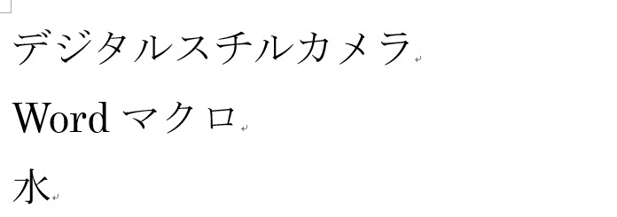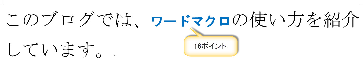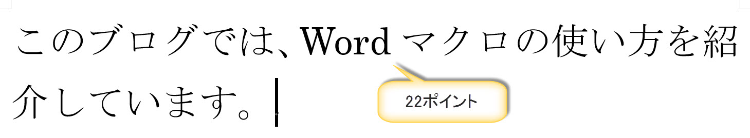 以下は、22ポイントで書かれた文章中の「Wordマクロ」という文字列を置換した場合の例です。辞書ファイルで「ワードマクロ」に設定された14ポイントになります。