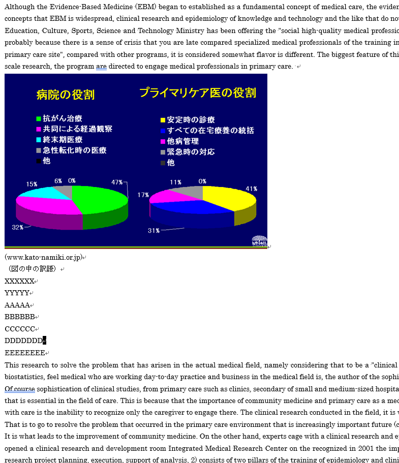 以下の例では、サンプルとしてhttp://www.jikei.ac.jp/ekigaku/medical の文章を原文に用い、このGoogle翻訳を訳文に用いました。
