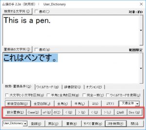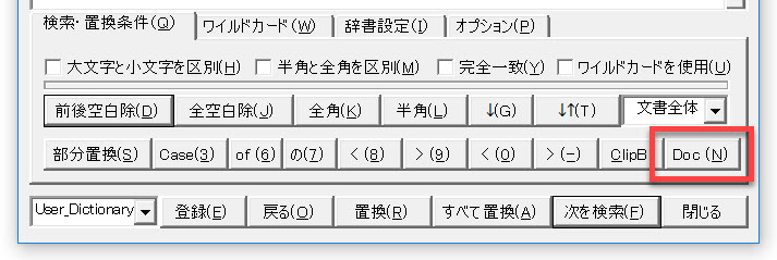 置換対象となる文字列の範囲を調整して文書中に現れる頻度をみて置換を検討するときに便利です。
