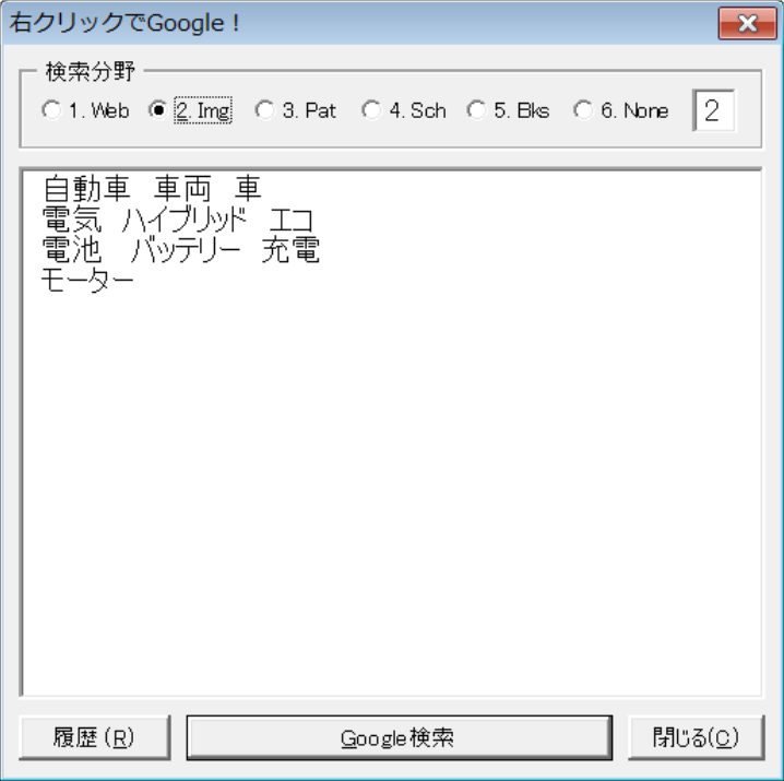 タイトルバーに「右クリックでGoogle!」と書かれていますが、別の名前の別のソフトにする予定です。