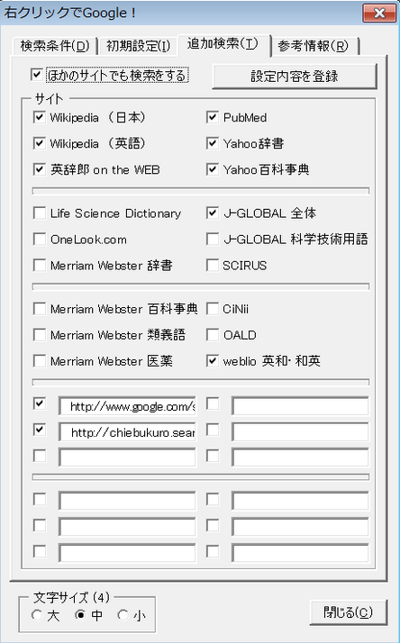 18のサイトはすでに登録されていオンライン辞書です(「Web串刺し検索に使えるサイト情報」で紹介いたしました)。