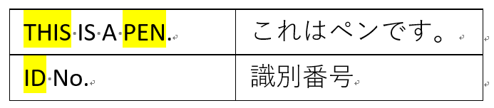 なので、以下のような対訳表では、英文中の大文字アルファベットは一切着色されません。