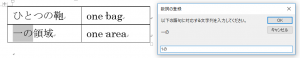 ひらがなの「ひとつ」ではなく、漢数字の「一つ」の場合にはチェックができます。この場合には、自動的に[1]を挿入する仕組みになっています。