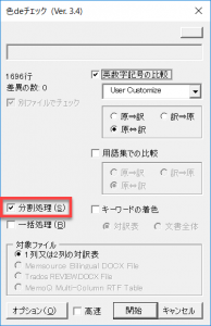 2.[分割処理]チェックボックスをオンにして[開始]ボタンをクリック