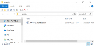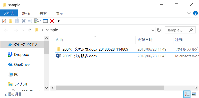 例では、デスクトップの「sample」フォルダ内の「200ページ対訳表.docx」を開きます。