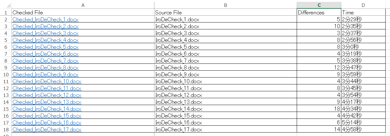 「チェック済フォルダ」内のExcelログファイルを開き、チェック結果を確認します。