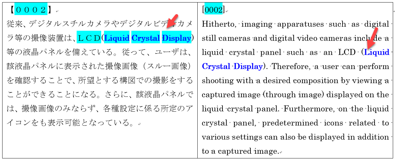 たとえば、英文中の「Liquid Crystal Display」を和文でチェックする場合です。