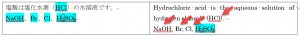 ここでいう元素記号というのは、HやClなどの元素記号単体や、NaOHなどの化合物の化学式です。