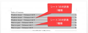 1ページ目に作成した対訳表の目次が表示され、2ページ目以降に対訳表が表示されます。