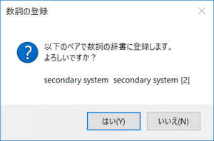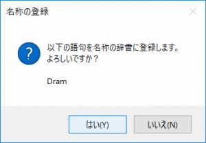 ダイアログが表示されるので[はい]ボタンをクリックして辞書に登録します。