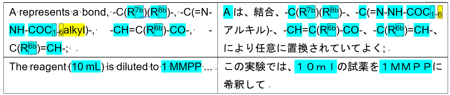 特許明細書における英語名称と参照符号の組み合わせで誤判定が出ることがあります。