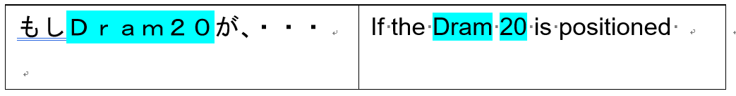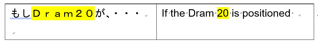 原文のDram20が訳文の中に見つからず、黄色になります。また、訳文の20も見つからなくて黄色になりました。