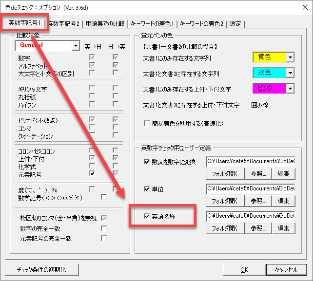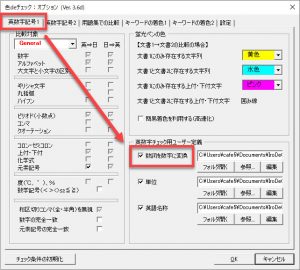 このあと、[チェック オプション]ダイアログボックスで、以下の項目をオンにしてください。これをオンにしないと、このユーザー定義ファイルがチェックで反映されません。