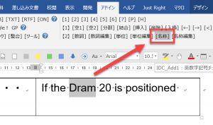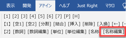 このような場合には、英語名称の箇所を選択してから[アドイン]タブにある[名称]ボタンをクリックします。