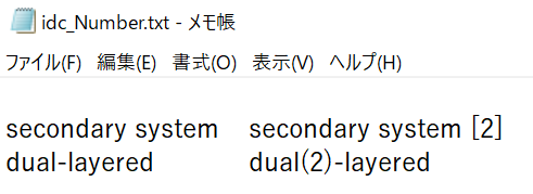 [数詞編集]ボタンをクリックすると以下のようにタブ区切りで登録されています。